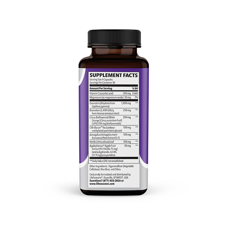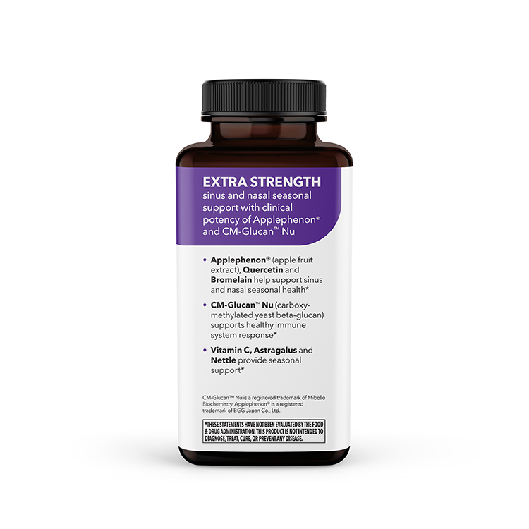 We created Breathe-X Extra Strength to provide even greater relief to those struggling with seasonal allergies and respiratory discomfort. By enhancing our proven formula with clinically effective doses of butterbur extract, beta glucan, and Applephenon® apple polyphenols, we’ve designed a comprehensive solution that addresses allergy symptoms and supports overall respiratory and immune health, without the side effects commonly associated with conventional allergy medications.*