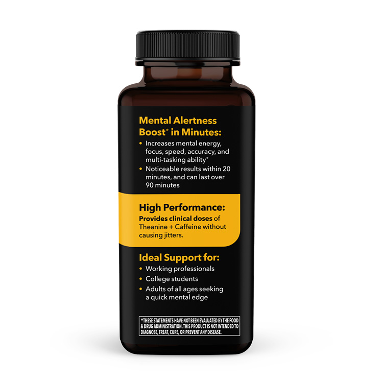 Our formula contains clinical doses of L-theanine and caffeine as well as L-tyrosine and beta-alanine, powerful nootropics to perform and focus under stress. An instant brain boost ideal for working professionals, college students, and adults seeking better cognitive performance.